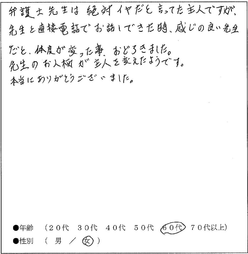 きたあかり法律事務所に寄せられた感謝の声をご紹介します。